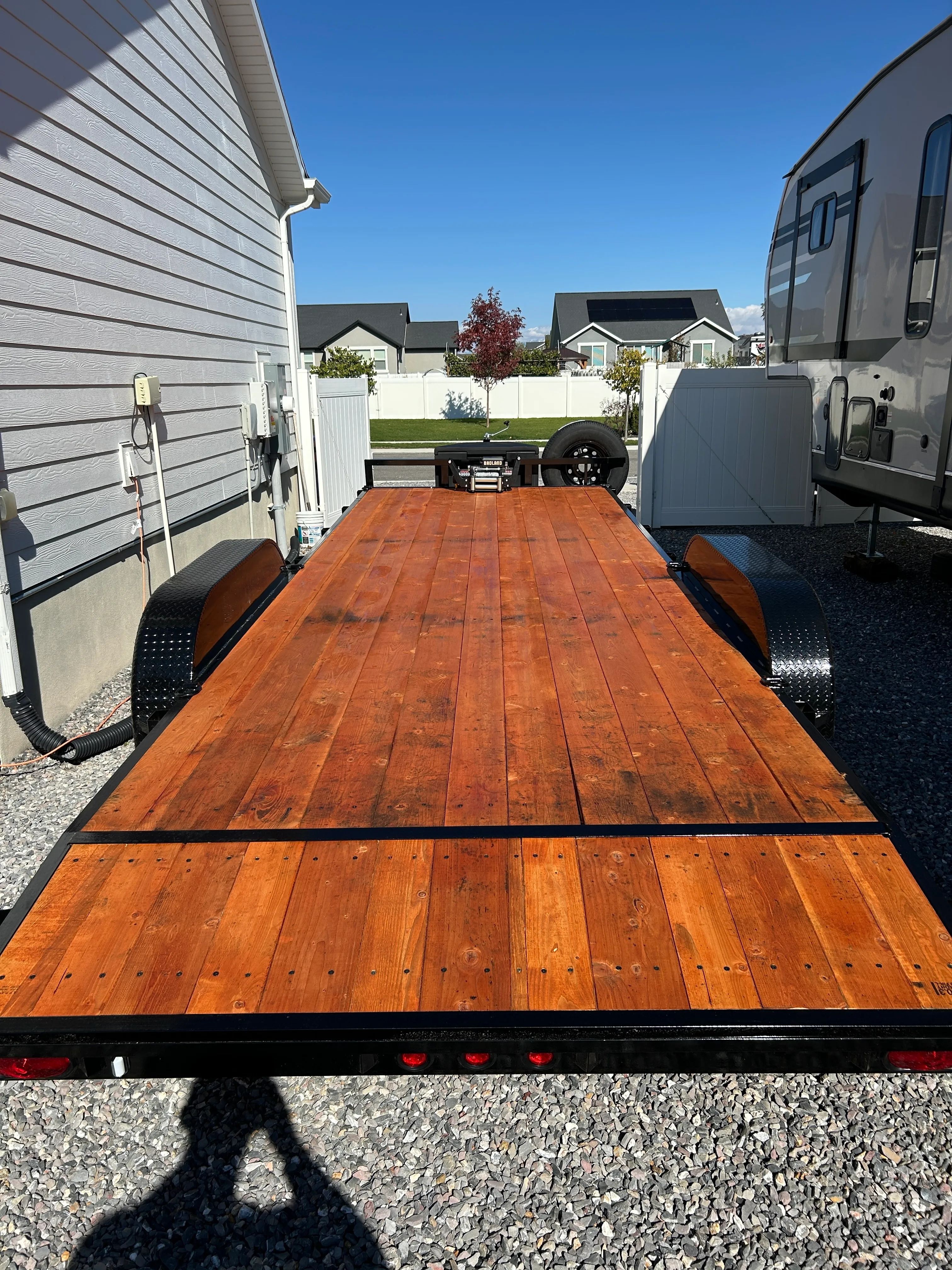 20’ flat bed with a 2’ dovetail (Great for low profile vehicles and equipment)